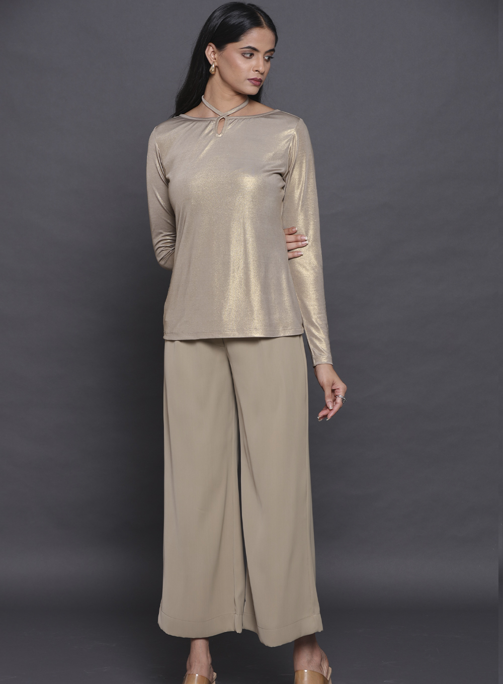 A SET from Barbie Lycra, featuring a unique shine and a distinctive neckline. Offers comfort and elegance with a touch of radiance for any look.
