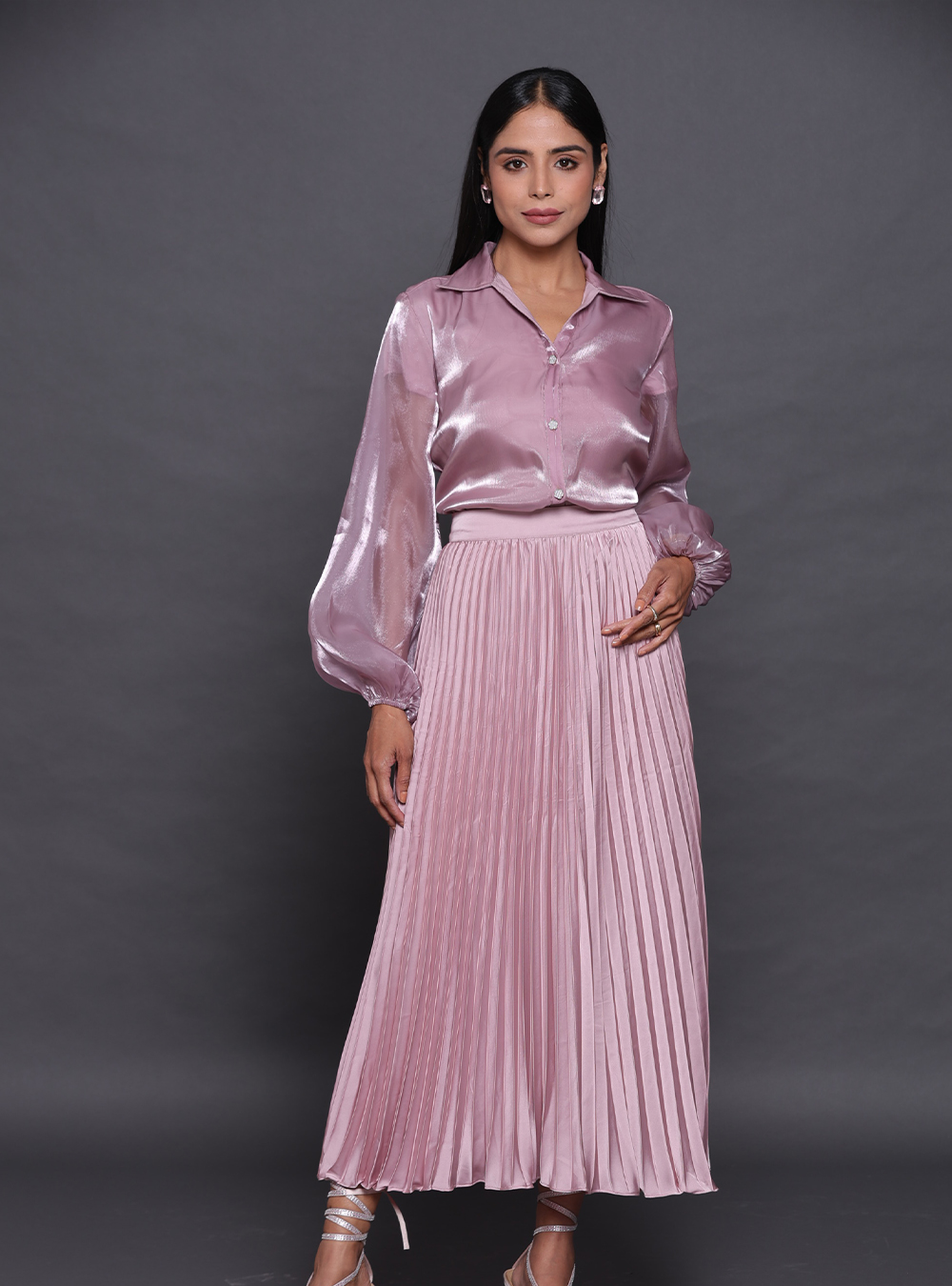 Choose elegance and comfort with this pink set made from luxurious Armani Satin, where its refined design captures the beauty of movement, making it a perfect choice for a standout look every time you wear it.
