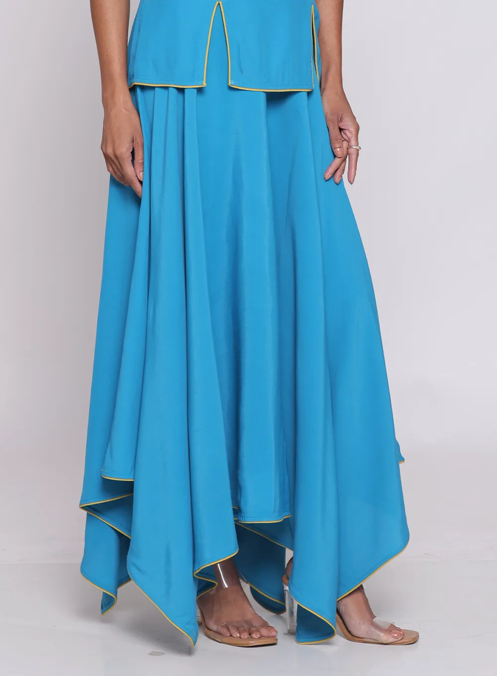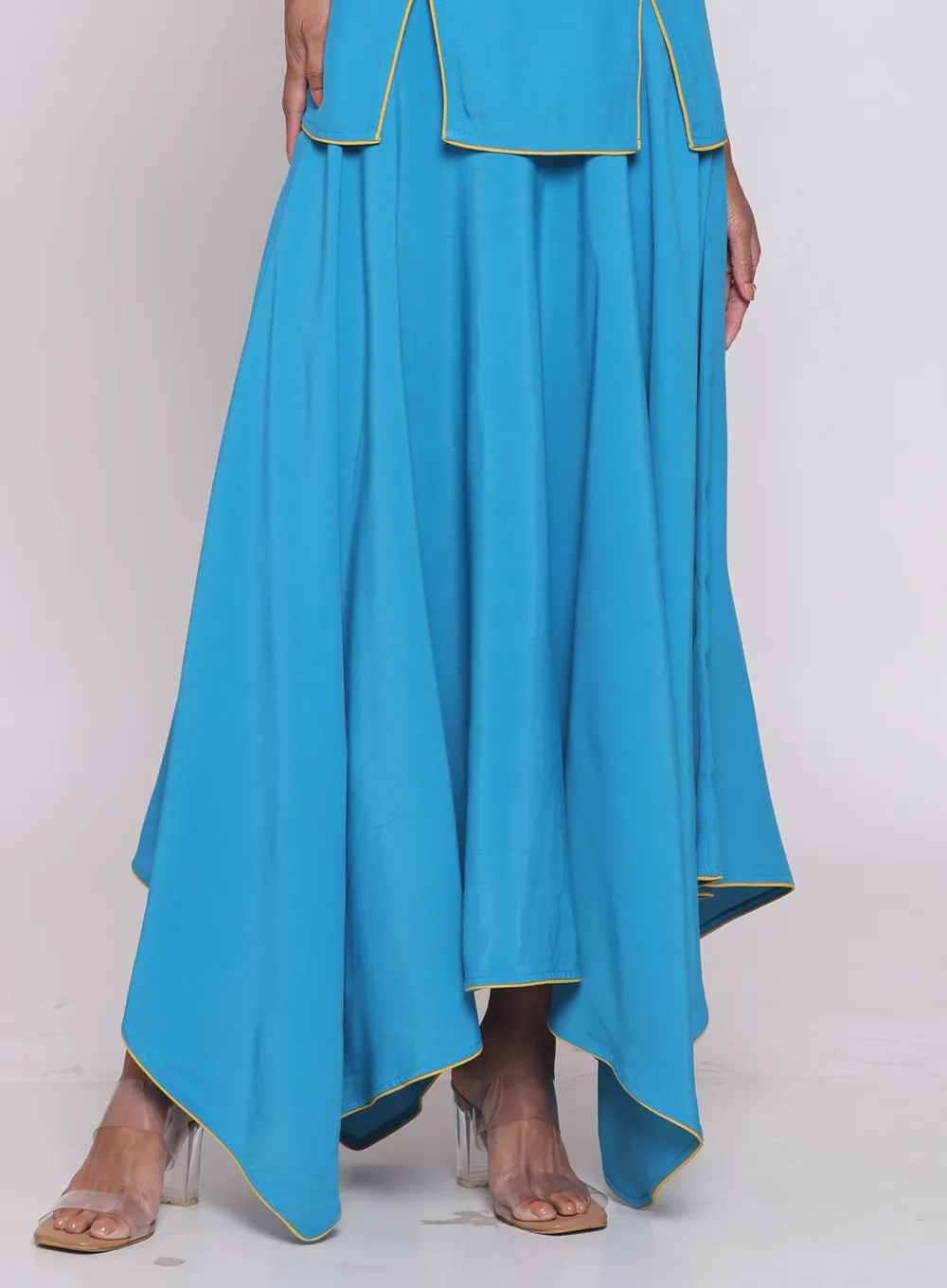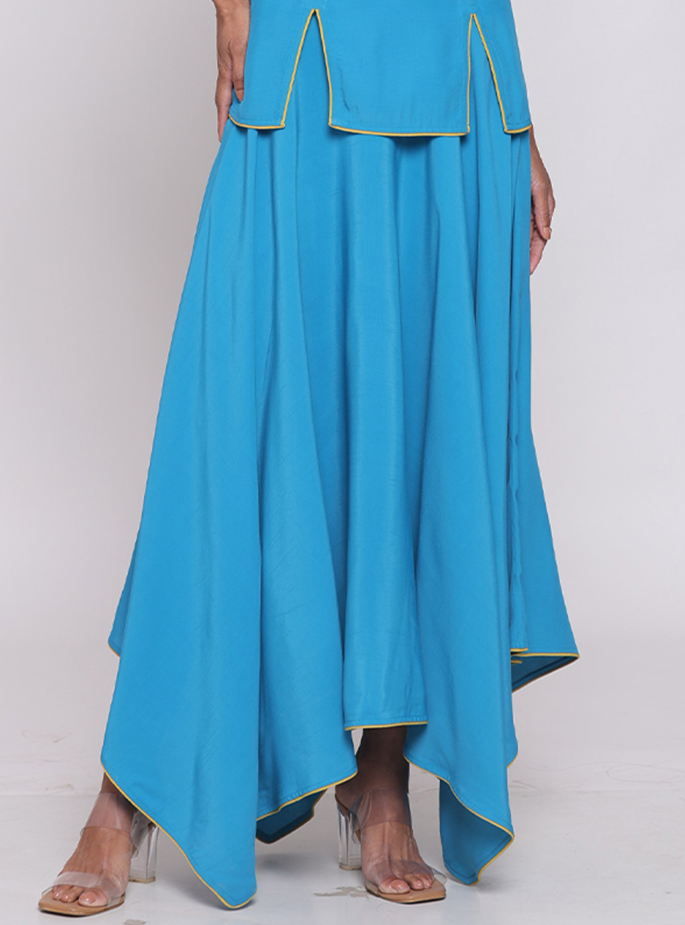 Choose beauty and flexibility with this skirt made from Crape fabric, featuring a wide, distinctive cut in a soft sky blue color. It combines comfort and elegance to give you a graceful and feminine look that keeps you at your best on every occasion.