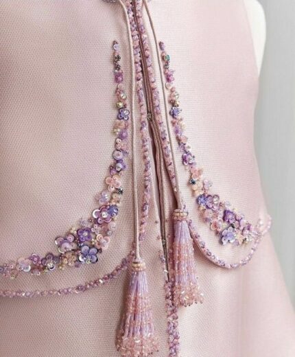 فستان ناعم وأنيق بلون بيج مصنوع من ساتان أرماني، يجمع بين البساطة والرقي بتصميم كلاسيكي لا يَزول جماله.