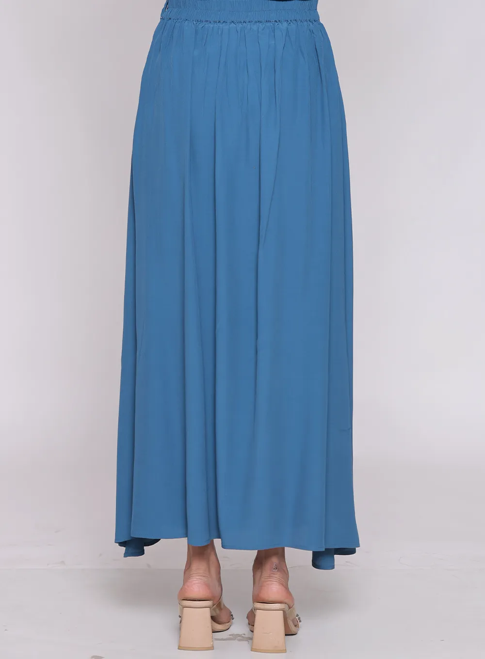 اختاري التميّز مع هذه التنورة الطويلة المصنوعة من قماش رويال كريب الفاخر باللون الأزرق المتناغم مع العباءة. تصميمها الجذاب وخامتها الفخمة يمنحانك إطلالة أنيقة ومريحة في آنٍ واحد.