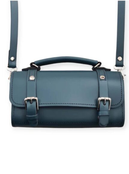 حقيبة أنيقة ومضغوطة ذات تصميم أسطواني مستوحى من الطراز الكلاسيكي. مصنوعة يدويًا من جلد فاخر، وتتميز بمقبض علوي متين، إغلاق مغناطيسي، وحزام كروس قابل للإزالة والتعديل (110–125 سم).