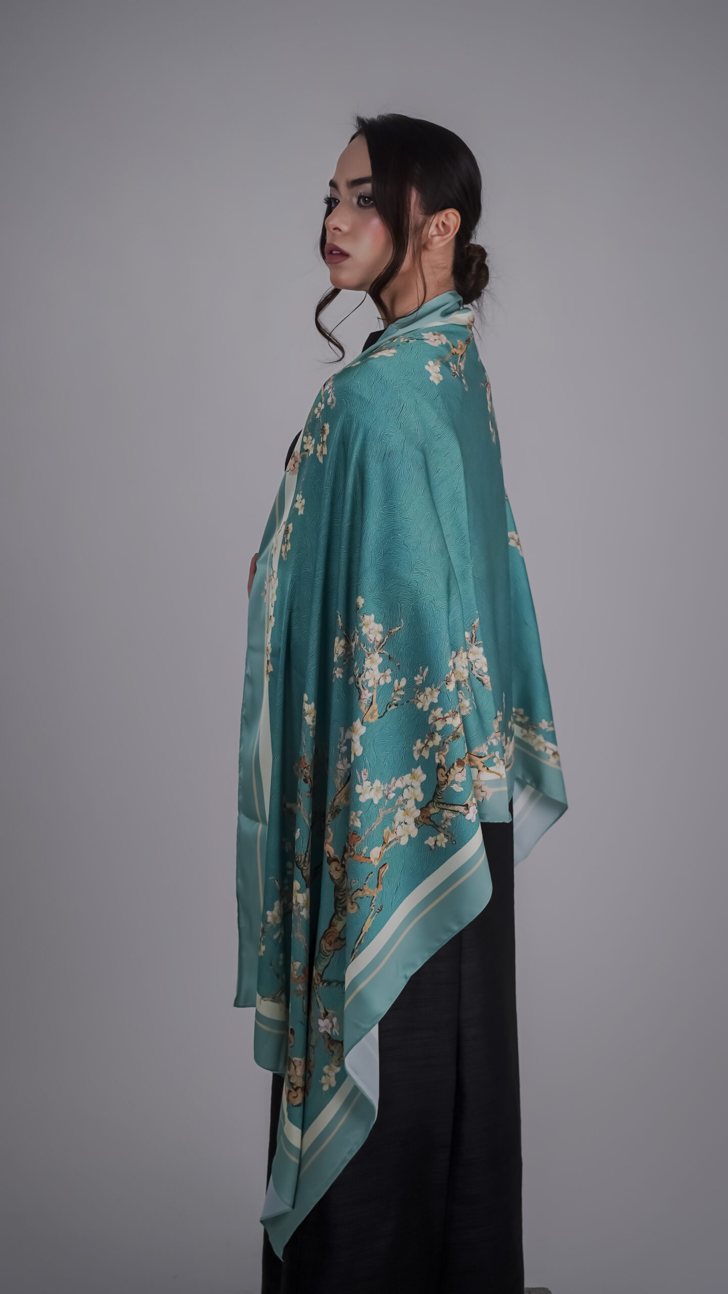 سكارف فاخر ضمن مجموعتنا الفاخرة المستوحاة من أعمال الفنان العالمي فان جوخ، حيث يلتقي الفن بالأناقة في تصميم استثنائي ينبض بالرقي.