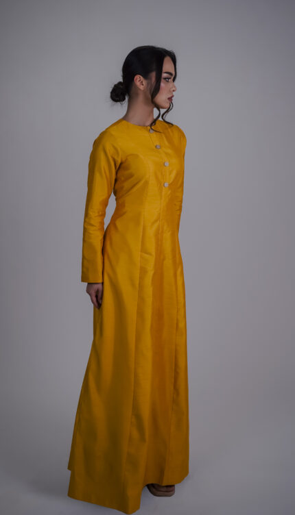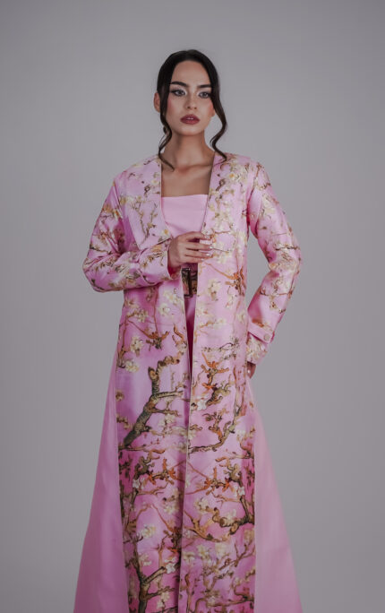 مصنوع من أفخم خامات الساتان الأرماني بملمس حريري فائق النعومة ولمسة مترفة تُشع فخامة. تنساب خامته بانسيابية راقية على الإطلالة، فيما تعكس الطباعة الرقمية الدقيقة تفاصيل التصميم بوضوح وعمق لوني استثنائي يعزز جمال القطعة.