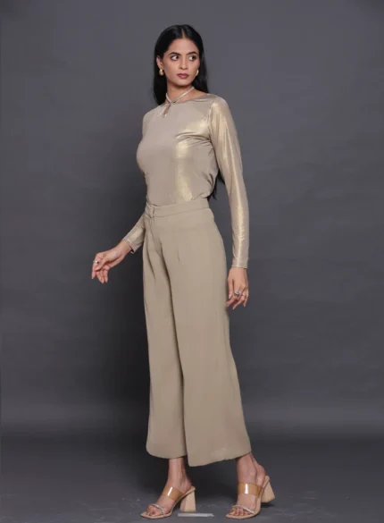 تميّزي بإطلالة أنثوية ساحرة مع هذا الفستان الأنيق باللون البيج المصنوع من خامة Armani Foil الفاخرة، التي تمنحك لمعة هادئة وراقية تبرز جمالك دون تكلف. يتميز الفستان بأكمام طويلة وقصة مميزة تواكب أحدث صيحات الموضة، مع حزام أنيق مرفق لإبراز الخصر بشكل جذاب.